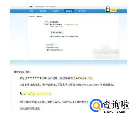 接着进入好友辅助,需要填两个以上的QQ号,QQ没有加过或者删了都没有影响。完成后找到填的那两个QQ号,他们的QQ邮箱里有辅助申请的链接,用那两个QQ去网站辅助申请,回执编码已经在界面上了,只需要进去填回执编码就可以啦。