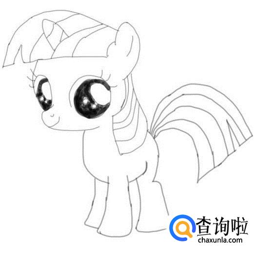 最后在小马宝莉的身体上画出小马宝莉的尾巴,这样简笔画小马宝莉就画好了,如图所示:
