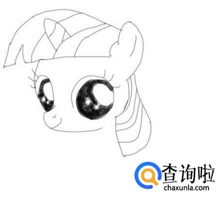 在面部上画出小马宝莉的两只眼睛,然后再画出小马宝莉的鼻子和嘴巴,如图所示: