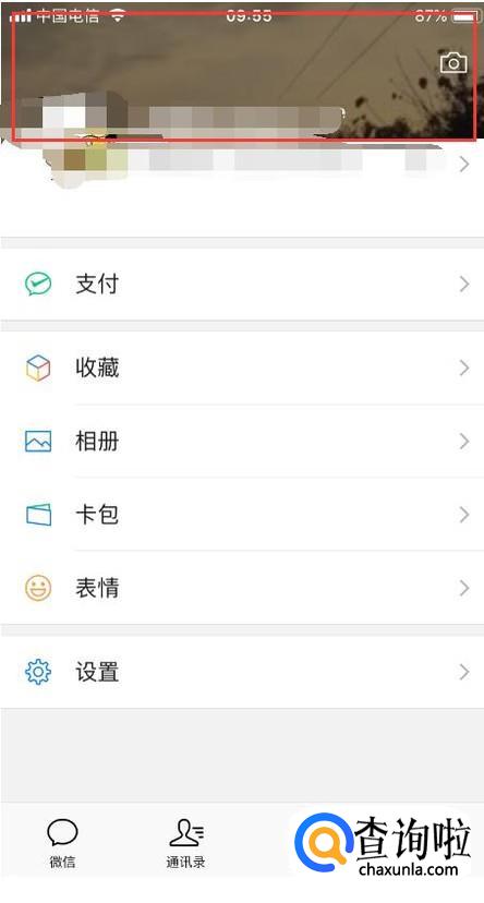 进入微信,点击右下角“我”,顶上的图片就是你发布的最新的时刻视频的截图,暂且可以看成是封面。