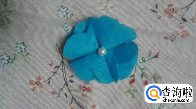 四个都粘好后,在粘一个小珍珠作为花心。