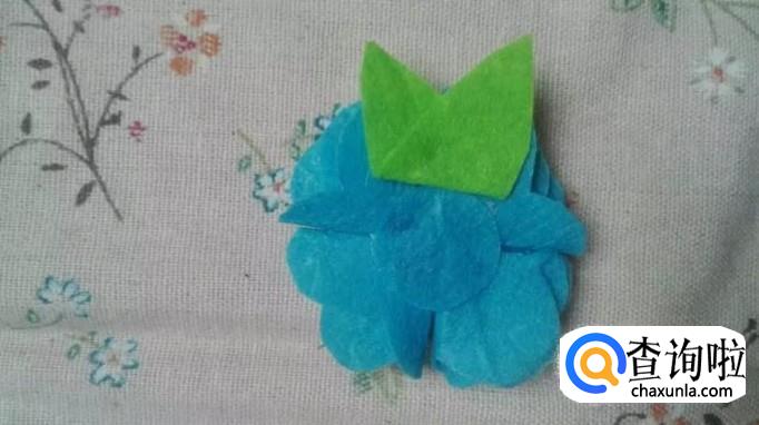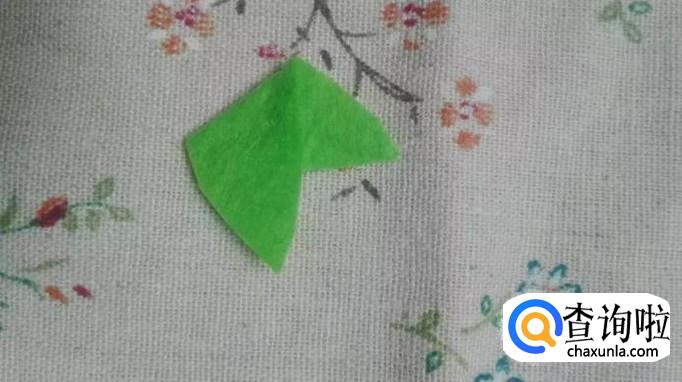 用绿色剪一个叶形不织布,斜着对折,如图所示。