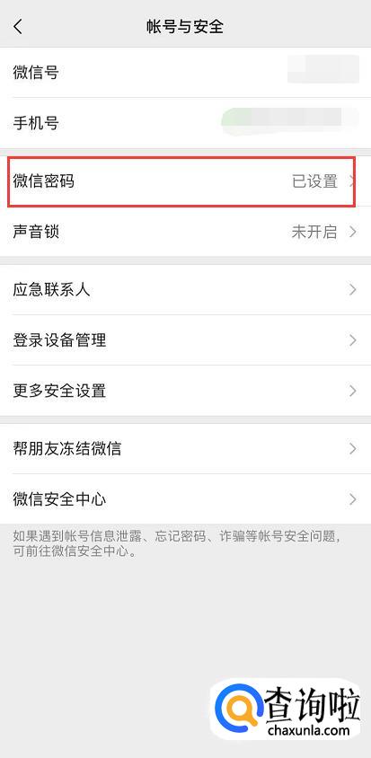 点击“账号与安全”,先修改微信的密码。
