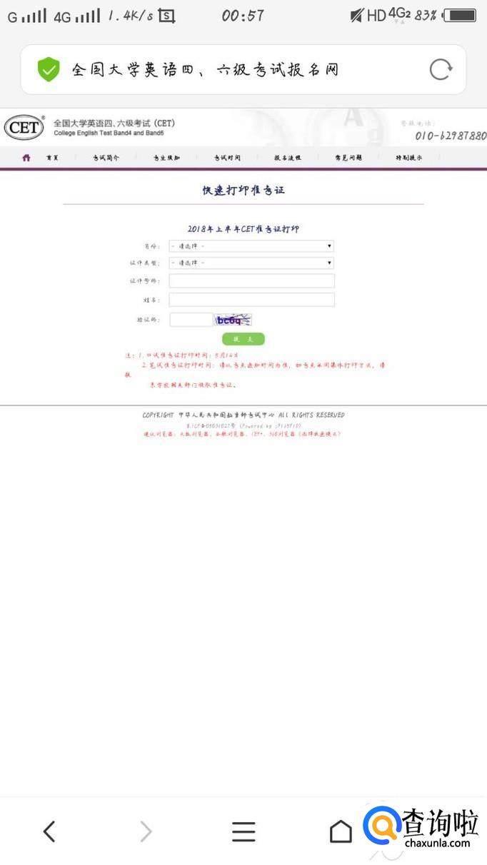 在首页最下端,有个快速打印准考证,点击进入