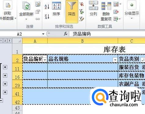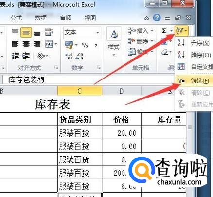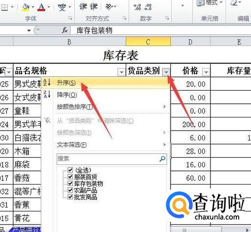 在标题上出现筛选按钮,点击要进行分类的标题上的筛选按钮,选择升序或降序,以便把相同的类别排在一起。