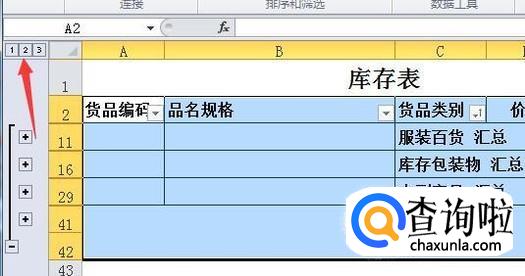 表格出现了汇总数据,并在左侧出现分级显示,点击第二级,也就是汇总数据。