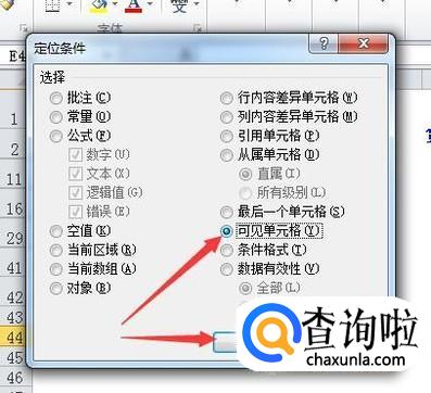 再点击开始选项卡,在功能区中点击定位条件功能,弹出定位条件对话框,勾选可见单元格。按确定。