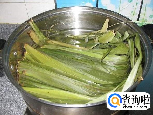我们需要把市场买回来的粽叶用清水清洗干净,然后放入热水锅里面煮几分钟。