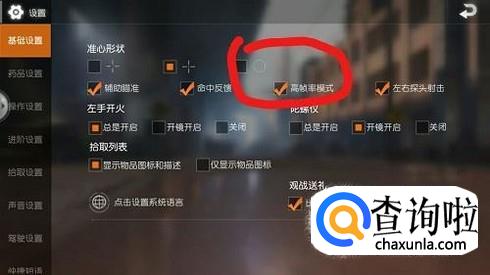 打开“高帧率模式”,点击前面的方框,方框中出现勾,则证明已经打开。