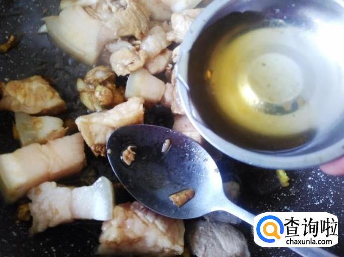 把猪肉放到锅里煲十几分钟,然后捞上来切成小方块。