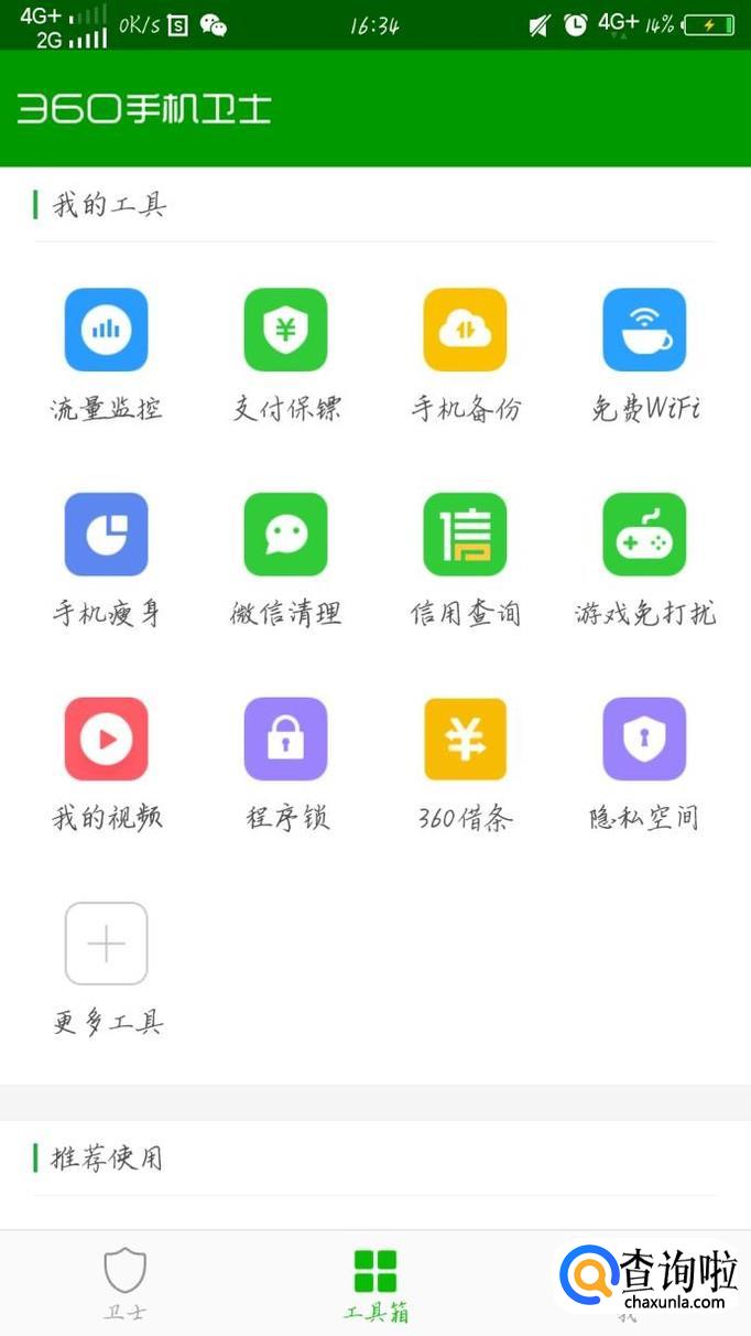 首先点开手机的应用软件,搜索下载360卫士。下载成功后点击安装,安装完成后打开360卫士,如图所示。
