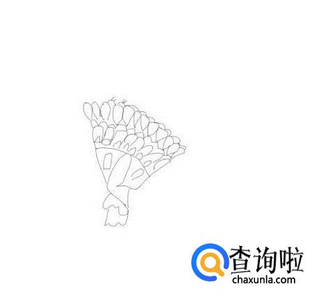 首先画出蓝孔雀叶罗丽的羽毛状的手部,如图所示: