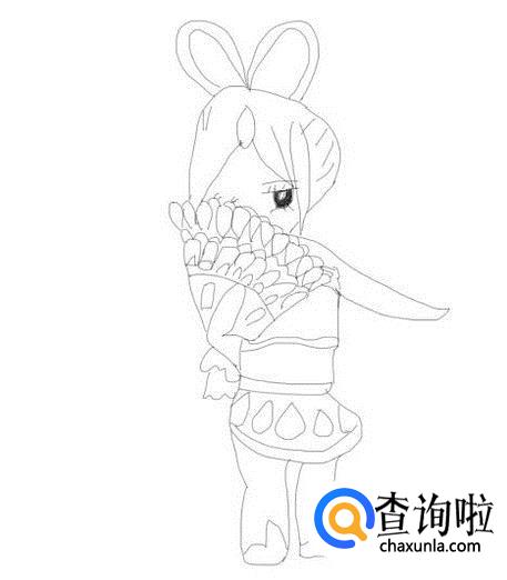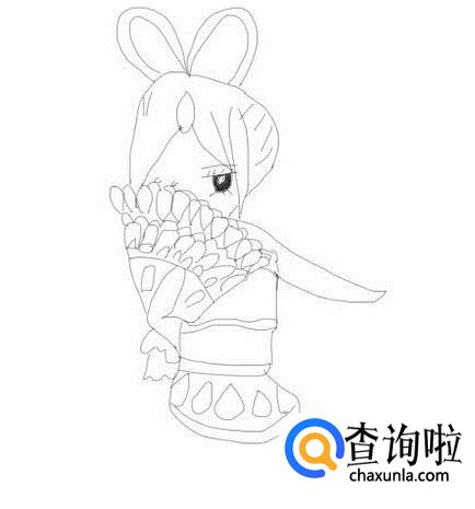最后再画出蓝孔雀叶罗丽的裙子及裙子上面的花纹线,这样蓝孔雀叶罗丽就画好了,如图所示:
