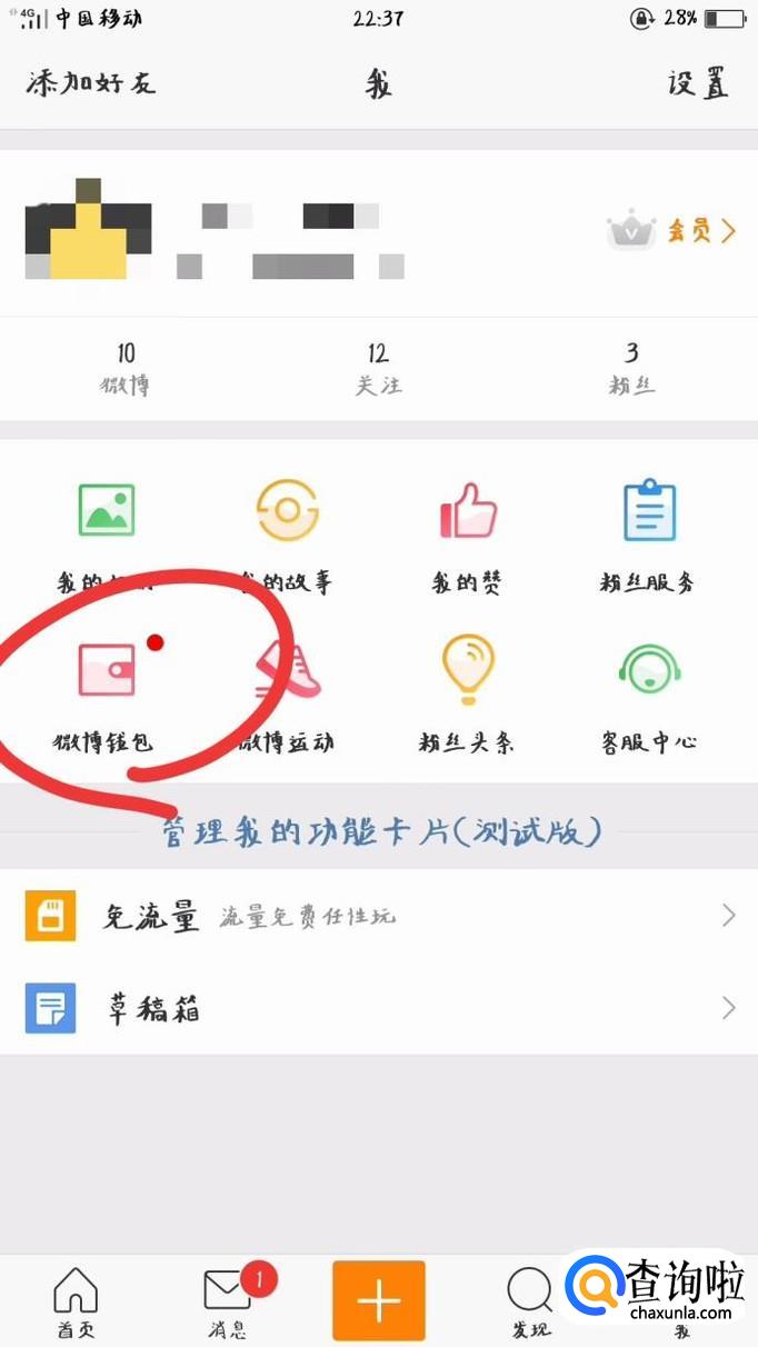 点击“微博钱包”图标。