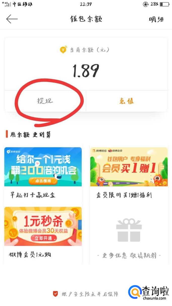 显示余额后点击下方“提现”选项。