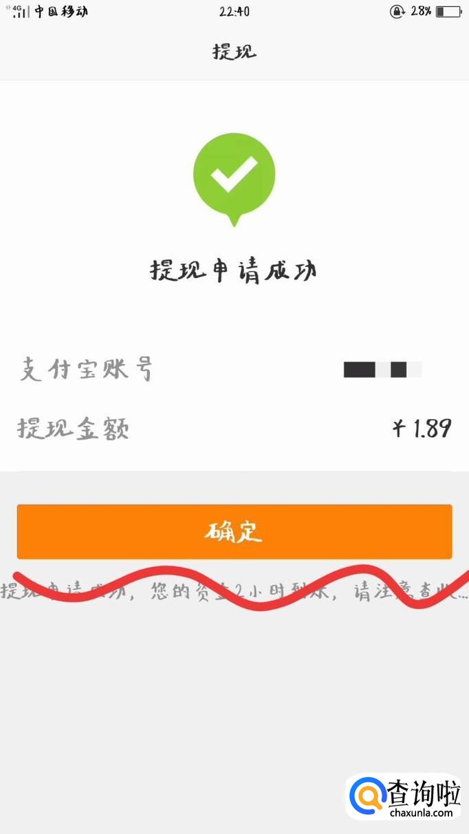 如下图所示,提现已成功,等待几分钟即可到账。