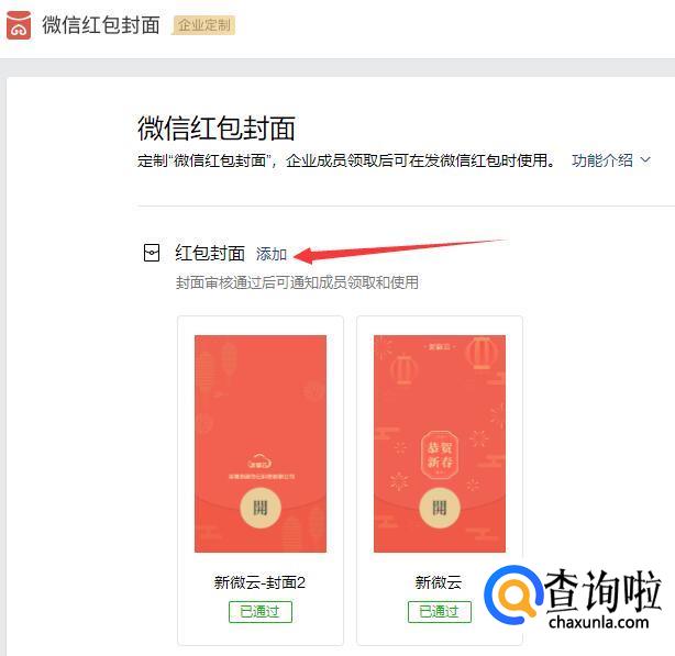 然后就进入了微信红包封面的设置界面,如图所示,我们点击【添加】。