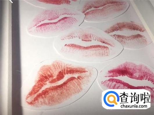 接下来就是把之前剪下来选好的唇印用双面胶粘或者胶棒在白卡纸上,布局可以根据自己喜欢的的方式来,但是要注意不要密密麻麻的一大片,还是要留一定的空白的地方,这样看起来才更加美观。