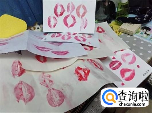现在就可以开始做了,第一步就是印唇印,拿出事先准备好的口红给自己涂好,如果比较干也可以先涂一层唇膏,效果会好很多,再印在准备好的A4纸上,换不同颜色的口红多印一点,毕竟不可能每一个都是完美的。