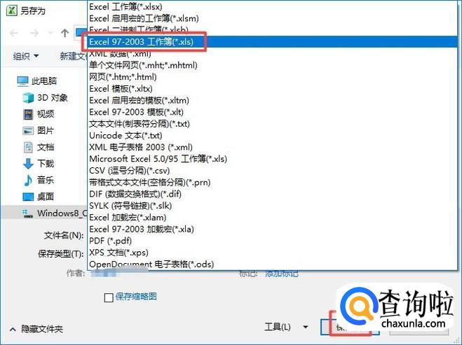 然后我们点开保存类型,然后我们在里面找到xls格式,然后我们点击保存,这样我们就将xlsx格式的文档转化为xls格式了。