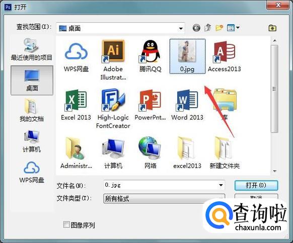 打开ps之后我们按下Ctrl+O键弹出打开对话框,在打开的对话框内找到我们的图片,如图所示: