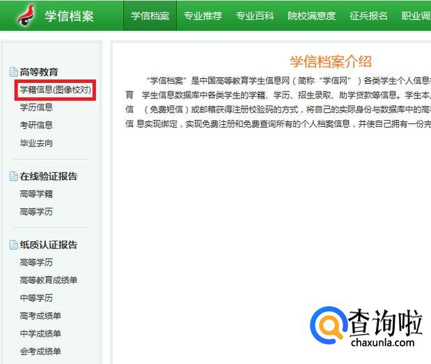 进入界面,点击学籍信息(图像对比)。