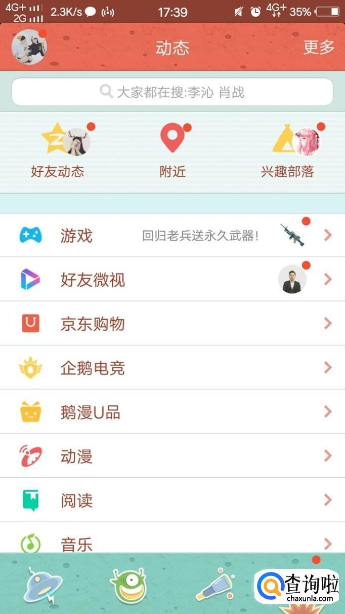 然后我们在相关页面点击下方的动态,再点击好友动态进入到好友动态页面。