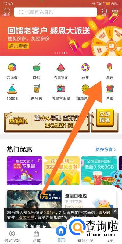 除了查询流量使用情况外,还可以查询手机卡套餐资费、话费余额和已开通的业务等。
