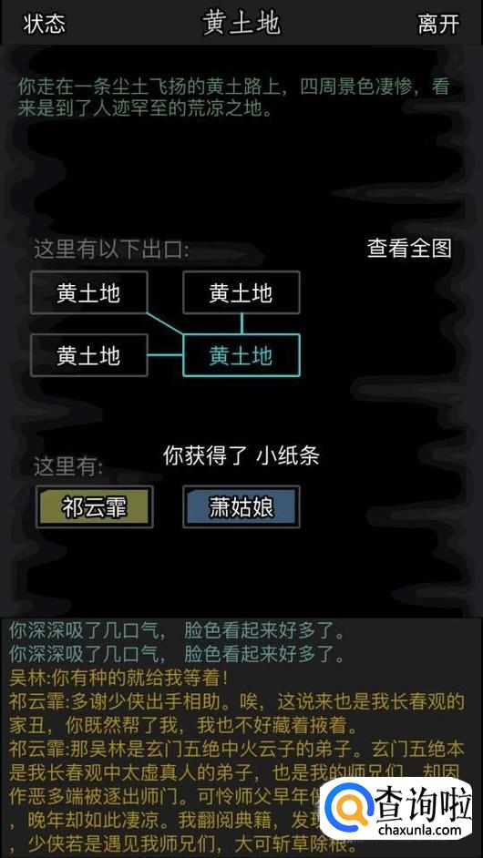然后一路往上,到达一下位置,和吴林切磋,再和云霏对话得到一个小纸条。
