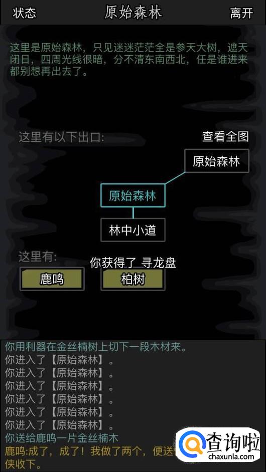 再回到鹿鸣那里把木头给他,他会给你一个寻龙盘。