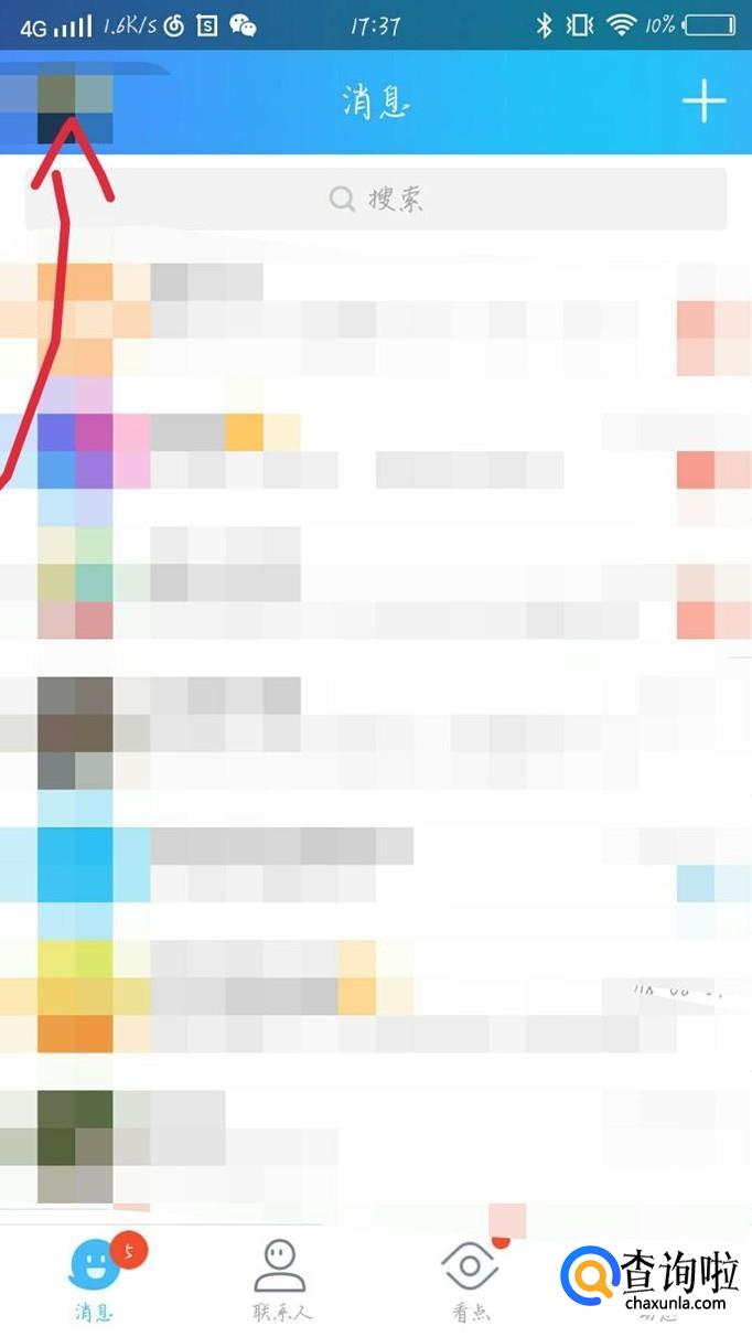 点击右上角自己的头像,长按,如图1箭头所示。你会看到出现一个新的界面,如图2所示。