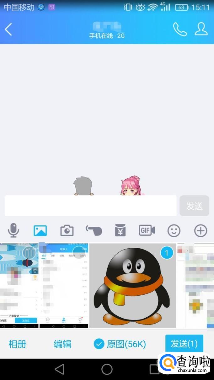 点击发送栏下面的图片标志。