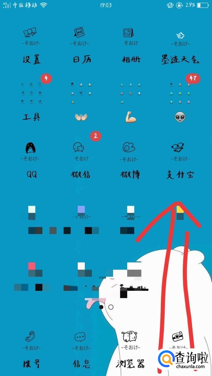 在手机的主屏幕,手指向上滑动,将下方菜单栏划出来。