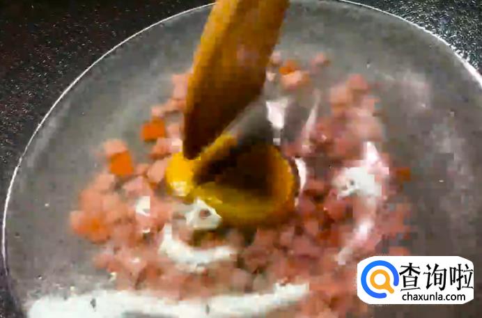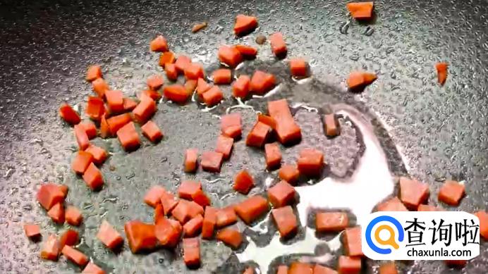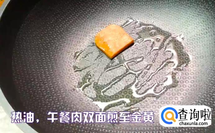之后锅内入油,午餐肉双面煎至金黄。如图所示。