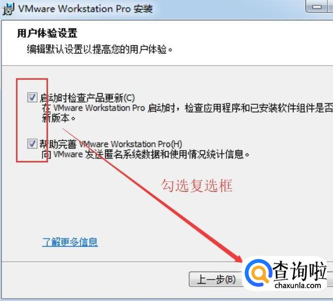 接下来会进入用户体验设置界面,把页面中的复选框都勾选上,如下图所示