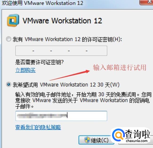 安装完毕以后点击启动程序,选择试用选项,输入邮箱点击继续按钮,如下图所示
