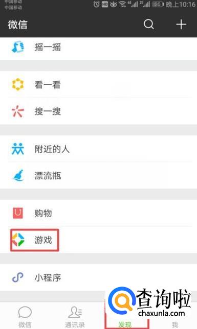 首先,我们打开我们手机上的微信,进入微信后,我们点击发现,然后我们点击游戏;
