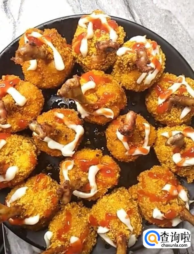 鸡腿,料酒,蚝油,奥尔良腌料,鸡蛋,淀粉,面包糠,番茄酱,沙拉酱