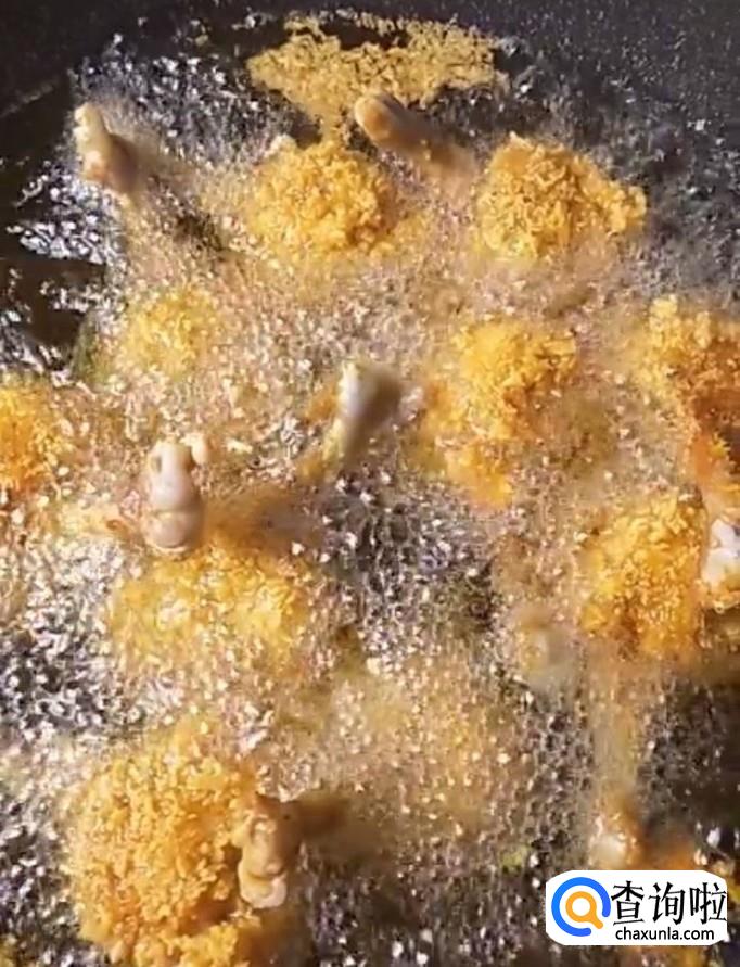 接着我们起锅烧油,油温五成热,下入锅中,炸至金黄酥脆捞出控油