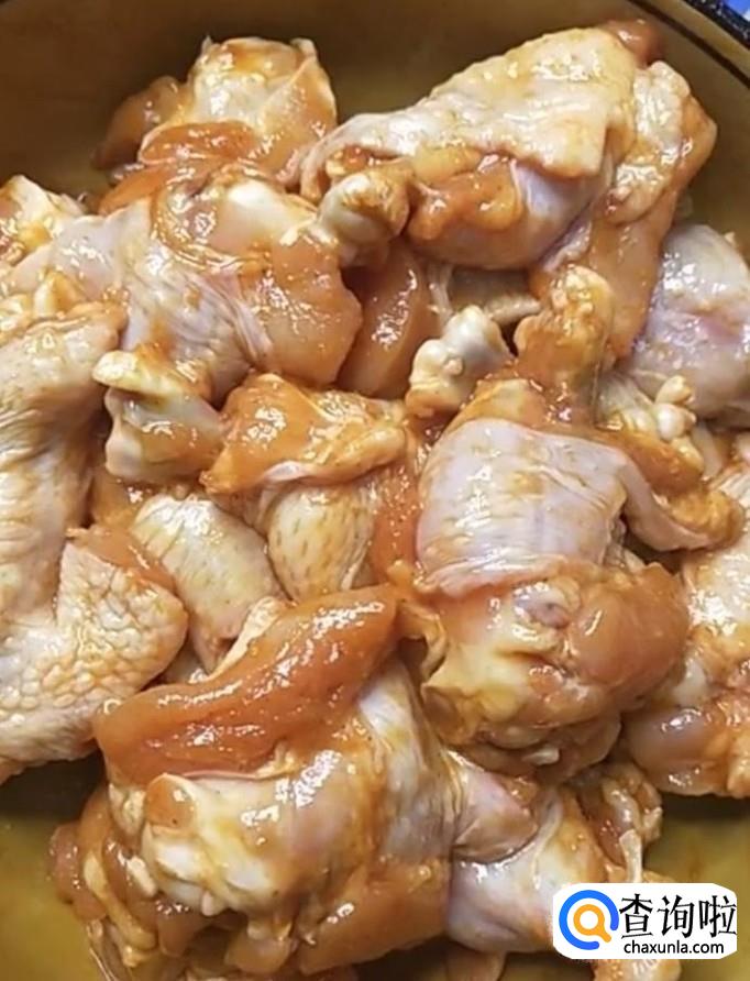 首先我们将鸡腿清洗干净,将鸡肉翻上去,放在一个盆中,如图所示