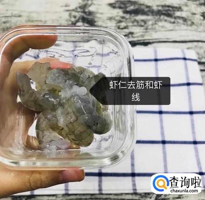 接着将虾仁去壳去虾线,如下图所示。