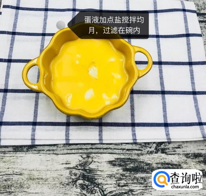 接着将蛋液过滤到碗中,如下图所示。