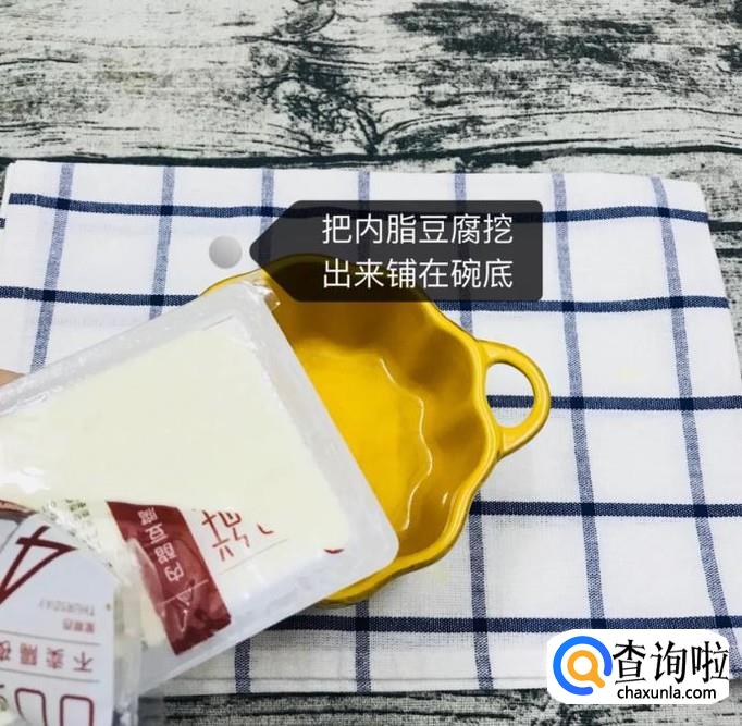 然后把内脂豆腐挖出来铺在碗里,如下图所示。