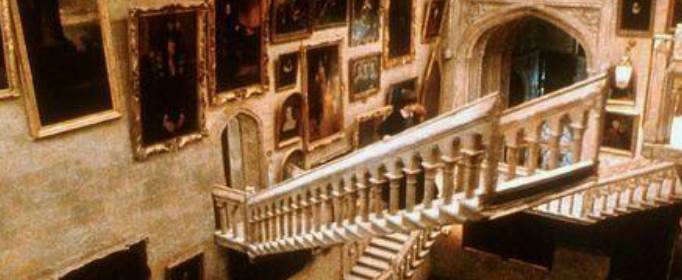 霍格沃茨魔法学校来源于J.K.罗琳的《哈利波特》魔幻小说。现实中并没有这个学校,电影中真实取景是在不同的地方拍他们的学校,一部分在英国北部的安东尼堡(Alnwick)一个中世纪的建筑,还有走廊是在格洛斯特大教堂(Gloucester Cathedral)等。长达十年的拍摄与制作,哈利波特电影取景足迹遍布英国。