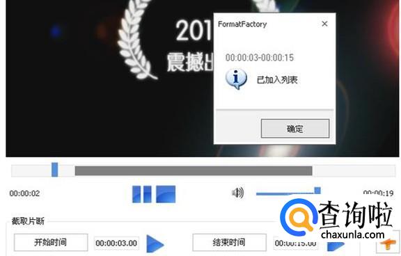 在剪辑界面,根据需要点下面的“开始时间”和“结束时间”,然后点右边的“+”,把截取的片段添加。点右上角的“确定”。