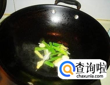 在煎鱼的锅中,放入葱姜蒜炝锅,炝出香味。