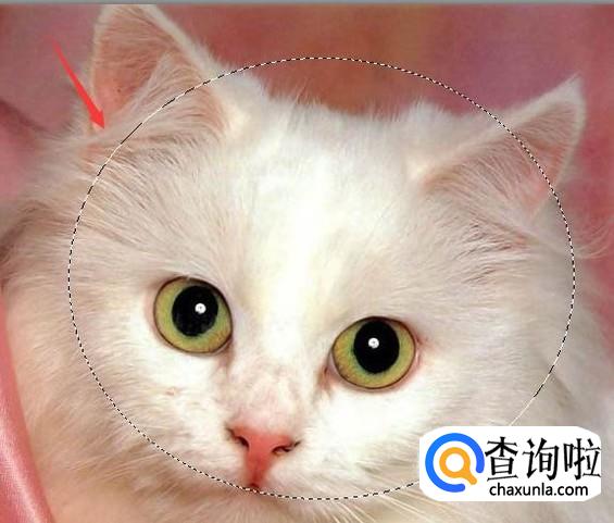 使用椭圆形选区在图片里画出一个椭圆选区,如图所示: