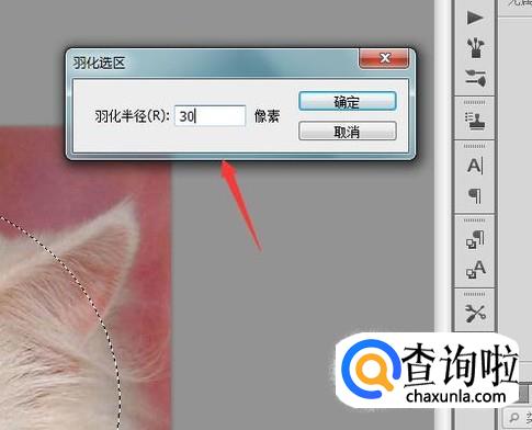 点击羽化选项在弹出的对话框内设置羽化值为30,如图所示: