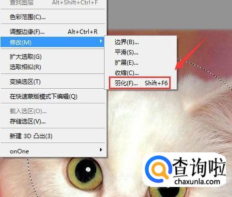 点击修改选项在其子级菜单里找到羽化选项,如图所示: