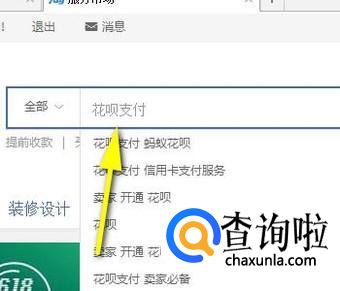 那么,就进入了淘宝服务市场;然后,在搜索框内输入关键词:花呗支付;再点击:搜索